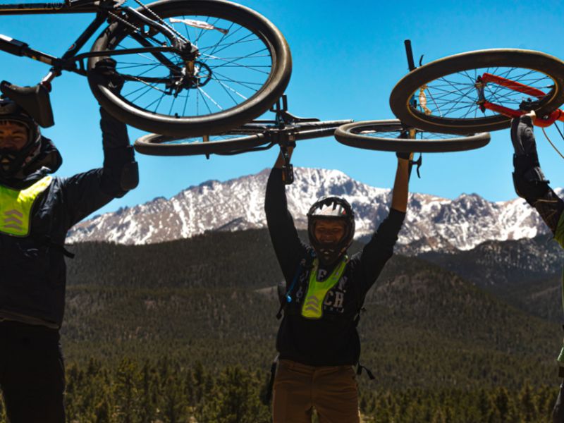 IMPORTANT: When preparing for the Pikes Peak Downhill Bike Tour, dress for summer but bring gloves, jackets, and pants to wear on top as it can be very very cold at the summit! The summit is an average of 30 degrees cooler than Colorado Springs.
